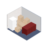 Fits the furnishings of a mid-sized bedroom, including a queen-sized bed, a dresser, a TV and several small to medium-sized boxes.
